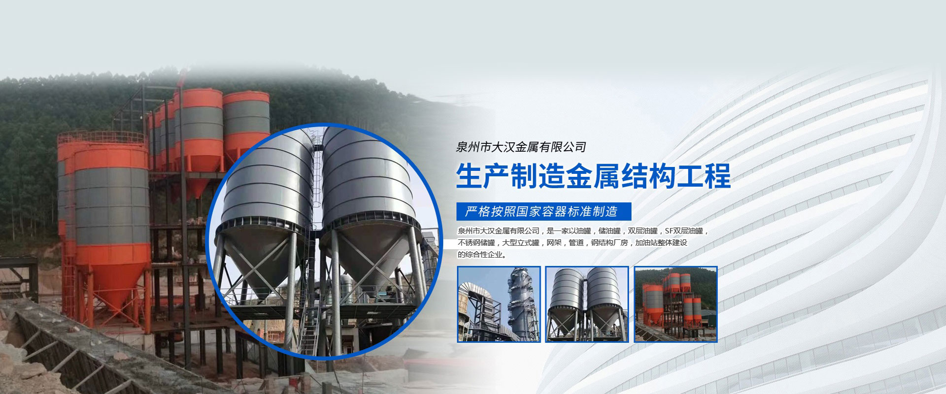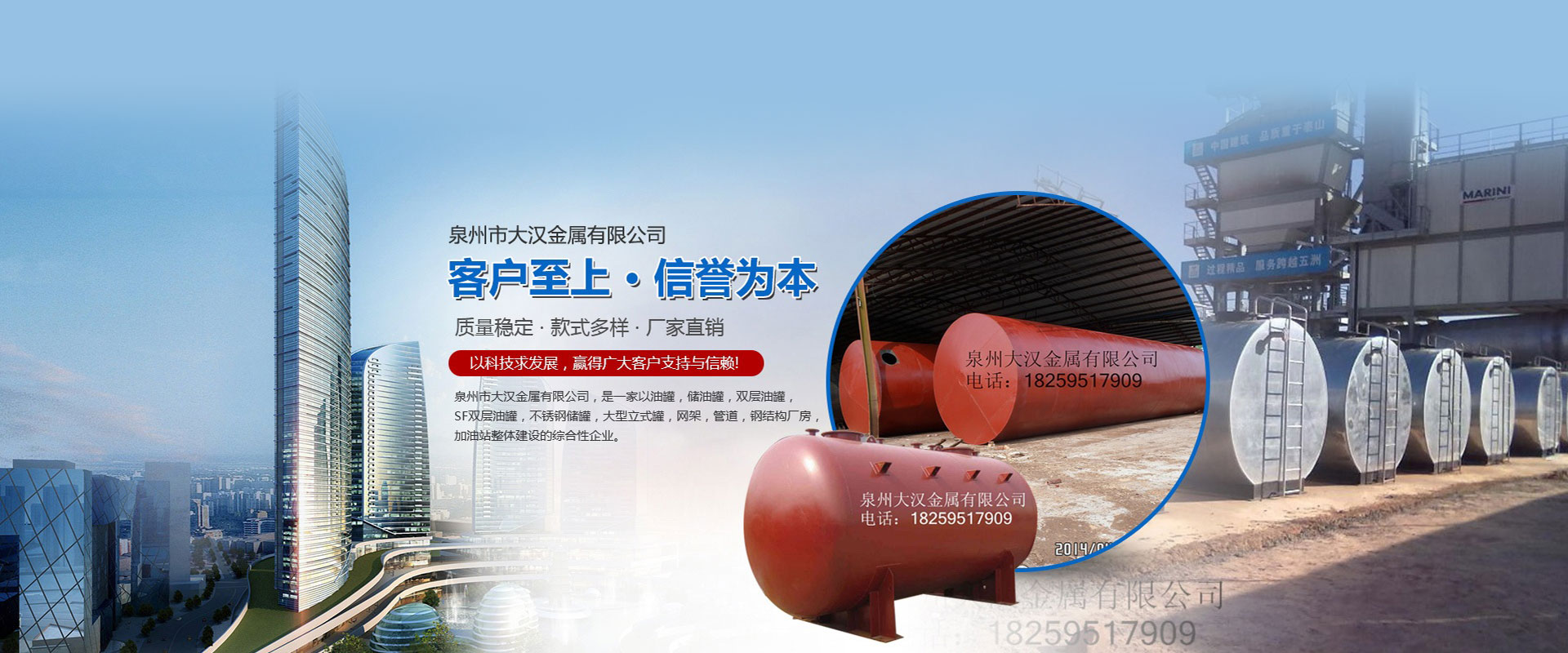 泉州市大漢金屬有限公司,是一家以油罐、儲(chǔ)油罐、雙層油罐、SF雙層油罐、不銹鋼儲(chǔ)罐、大型立式罐、網(wǎng)架、管道、鋼結(jié)構(gòu)廠(chǎng)房、加油站整體建設(shè)的綜合性企業(yè)。本公司以技術(shù)人員、施工經(jīng)驗(yàn)豐富的工程隊(duì)、自動(dòng)化設(shè)備、擁有鋼結(jié)構(gòu)建筑、螺栓球網(wǎng)架設(shè)計(jì)安裝技術(shù)力量,嚴(yán)格按照國(guó)家容器標(biāo)準(zhǔn)制造,是一家產(chǎn)品開(kāi)發(fā)并生產(chǎn)各種壓力容器和制造金屬結(jié)構(gòu)工程,化工石油工程安裝的大型企業(yè)。近多年來(lái),以質(zhì)量穩(wěn)定、客戶(hù)至上、信譽(yù)為本,以科技求發(fā)展,贏得廣大客戶(hù)支持與信賴(lài)。